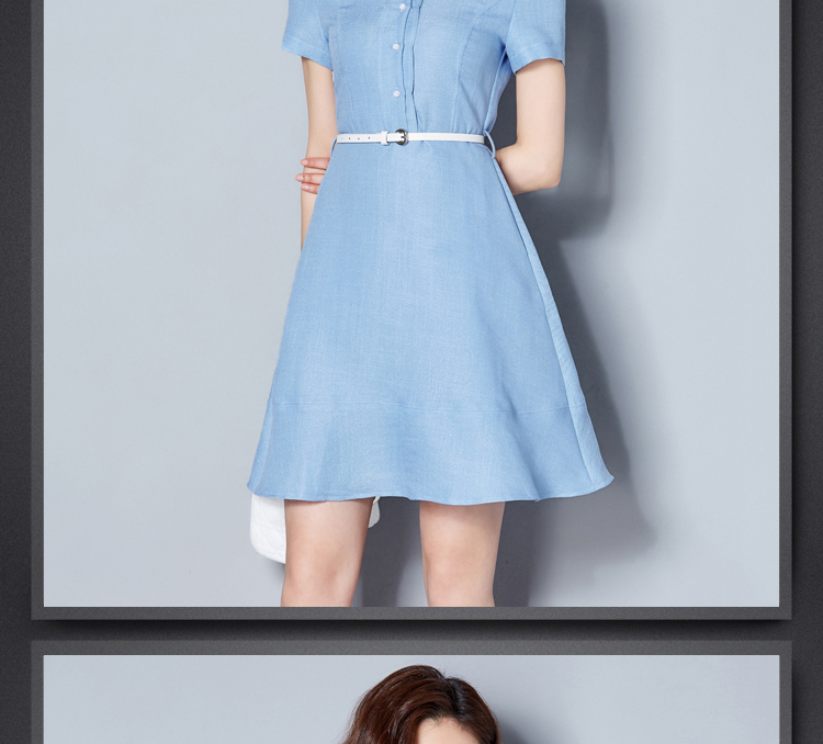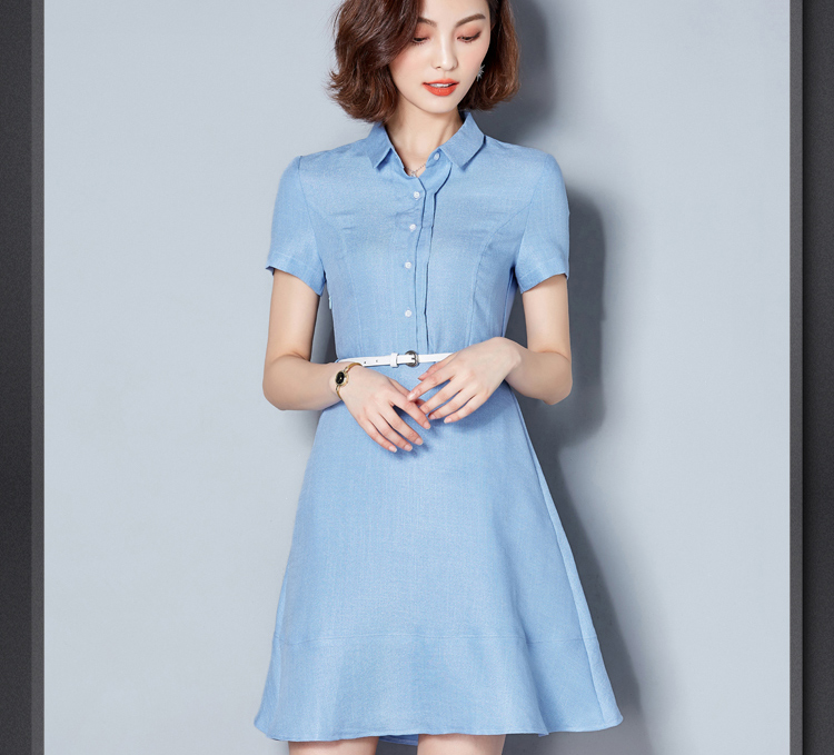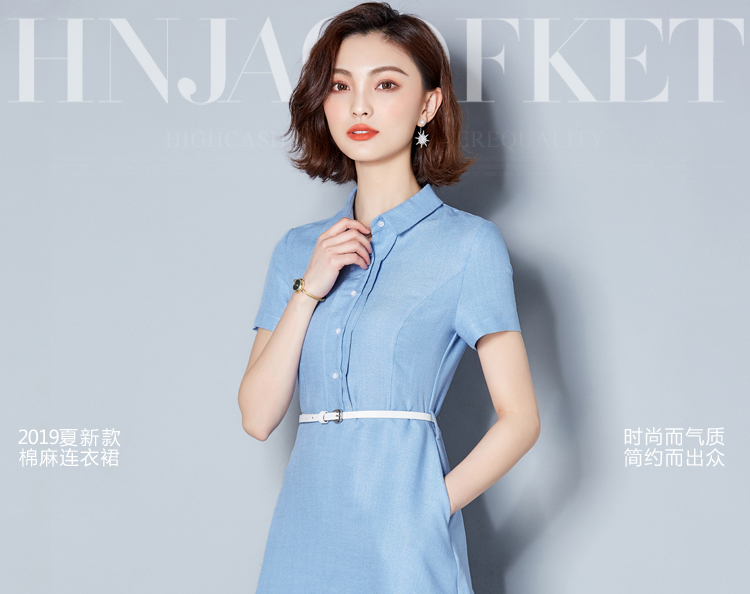 1. 2022夏裝新款女裝通勤襯衫領(lǐng)裙子ol夏季修身棉麻短袖職業(yè)連衣裙